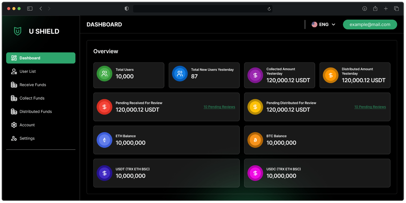 - Automatically generates and allocates centralized addresses on multiple blockchains (such as BSC, ETH, SOL, TRON, and Bitcoin) for convenient user fund reception.